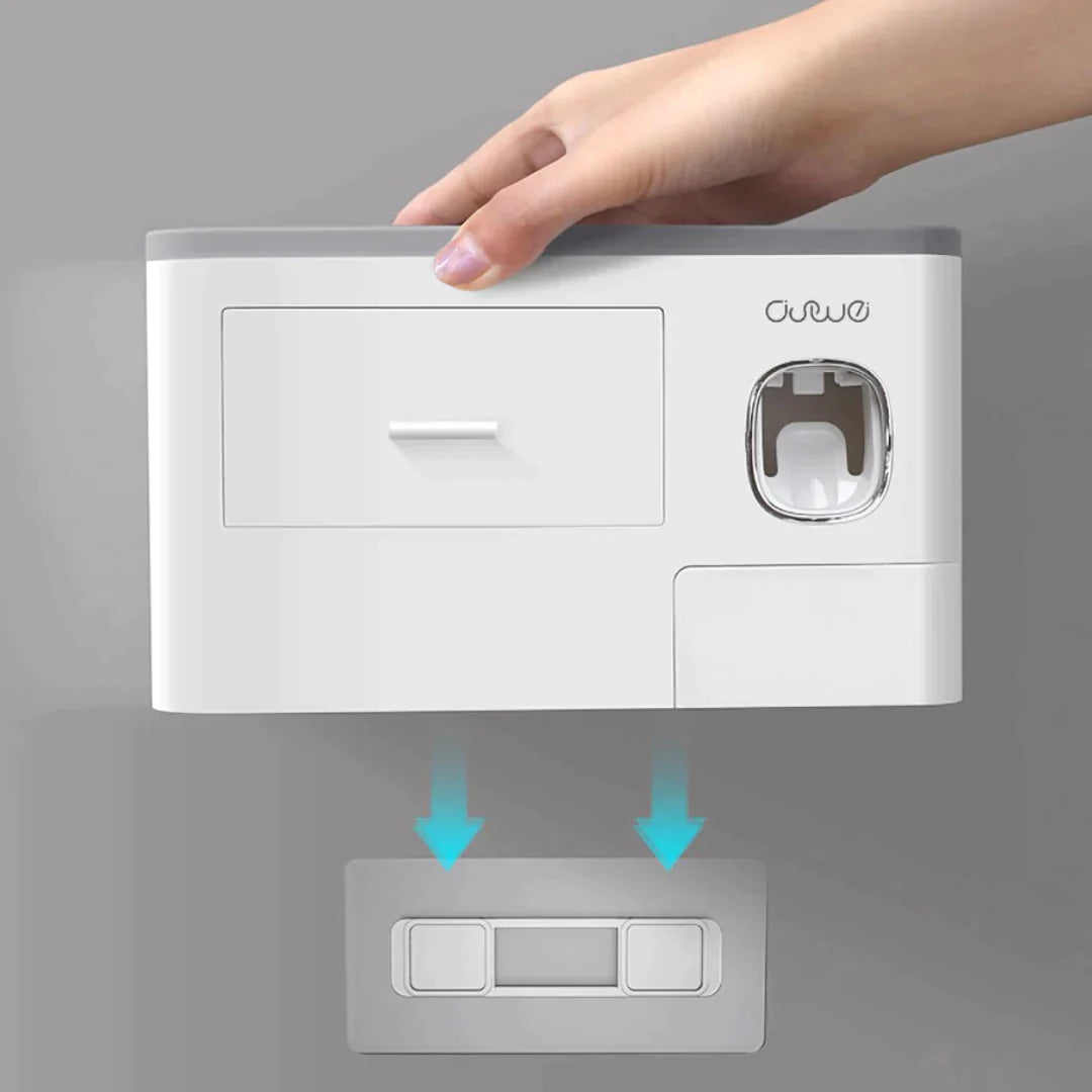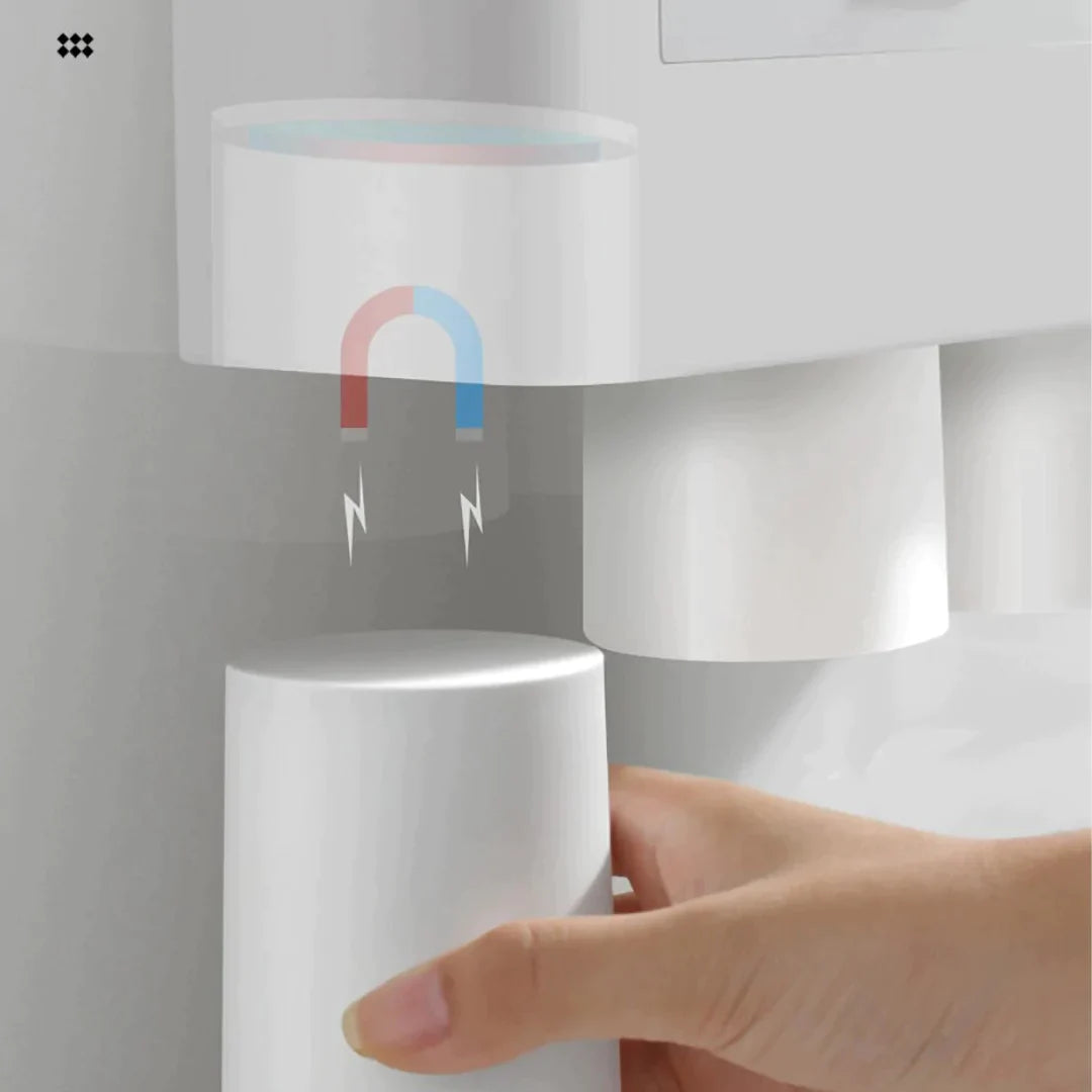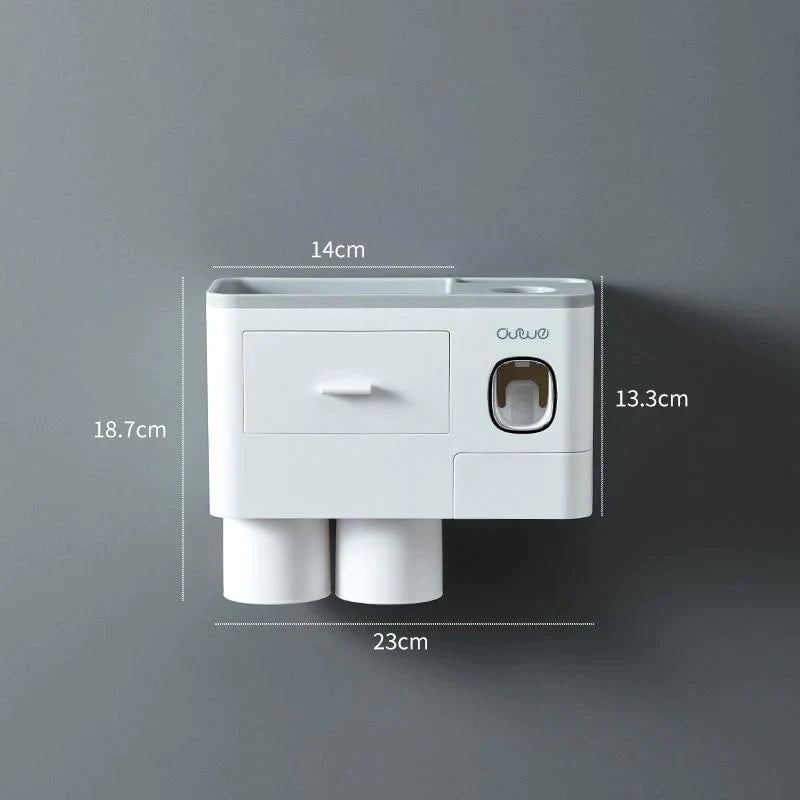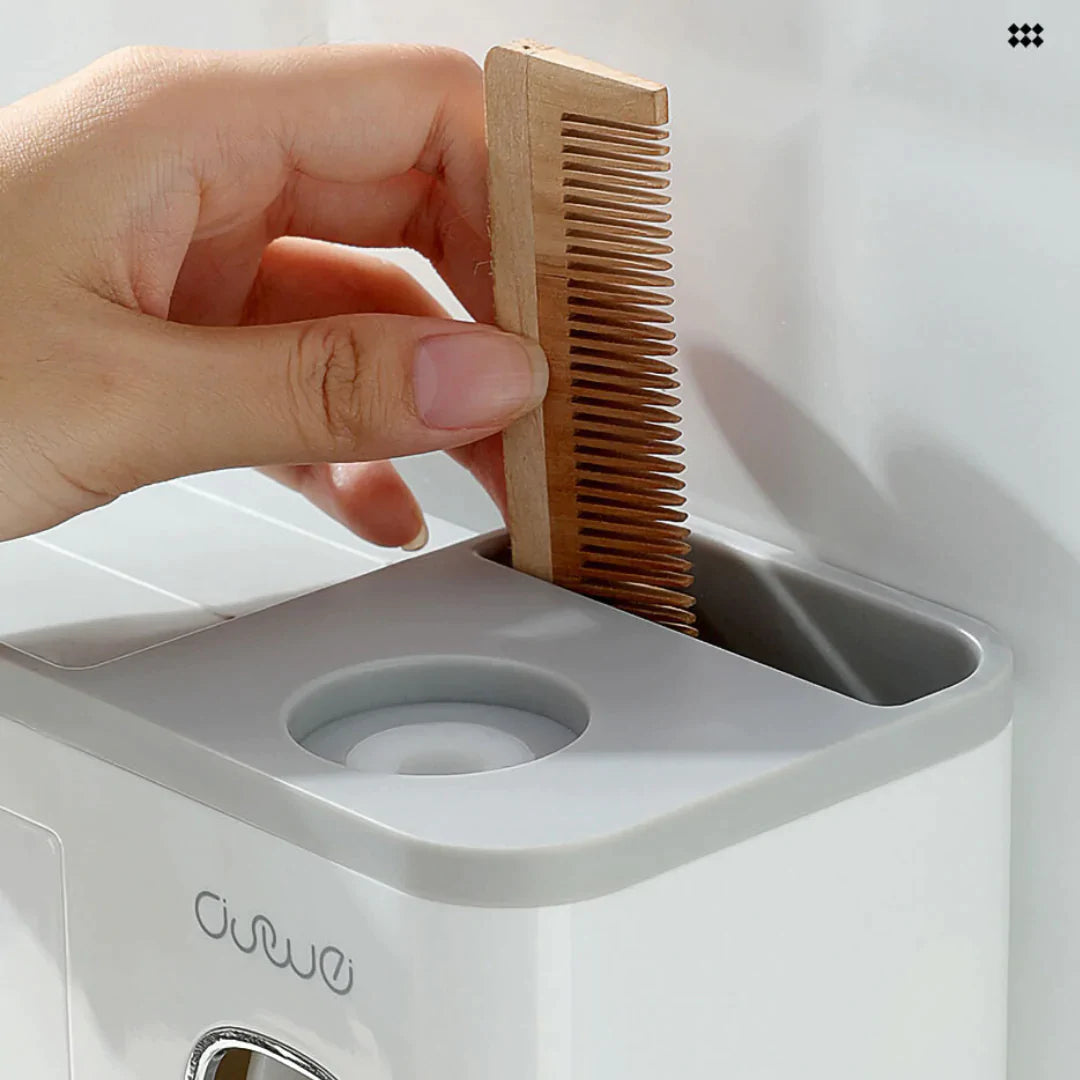 - AUTOMATIC TOOTHPASTE DISPENSER - This Toothbrush Holder features a built-in automatic toothpaste dispenser. It automatically assigns the perfect amount of toothpaste for you every time and prevents any waste of toothpaste.