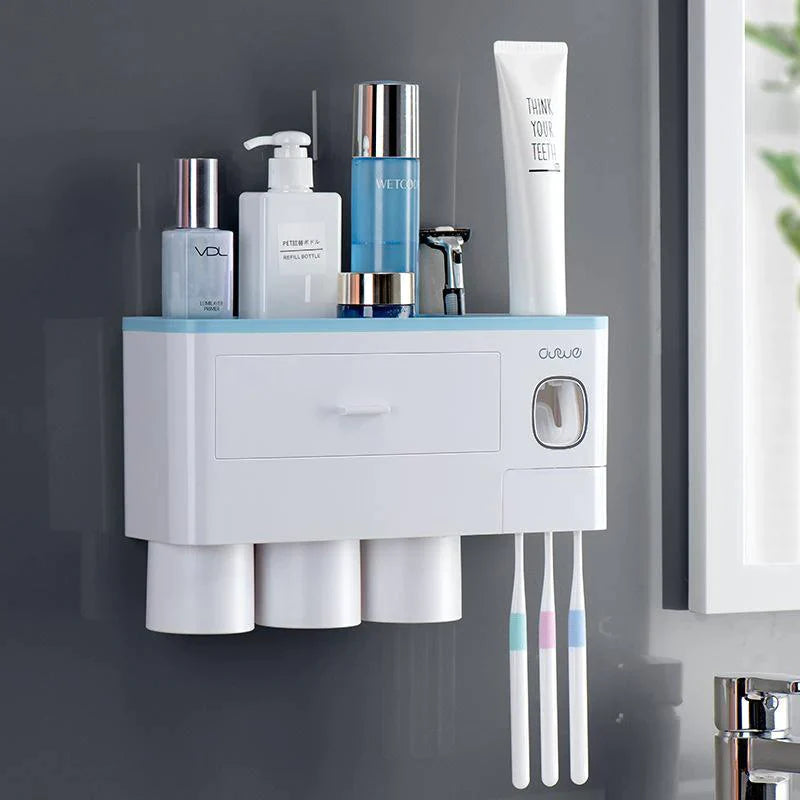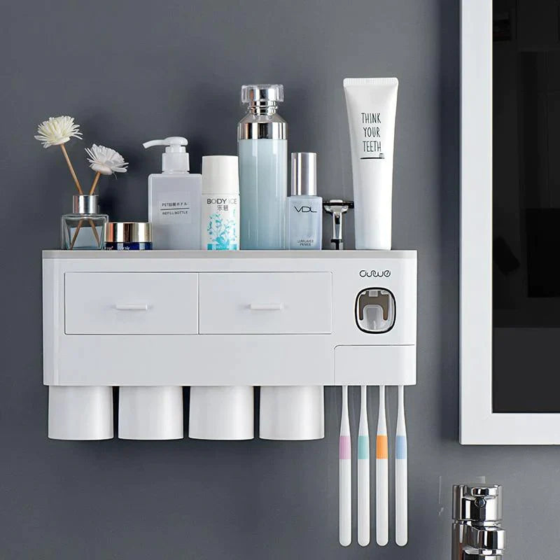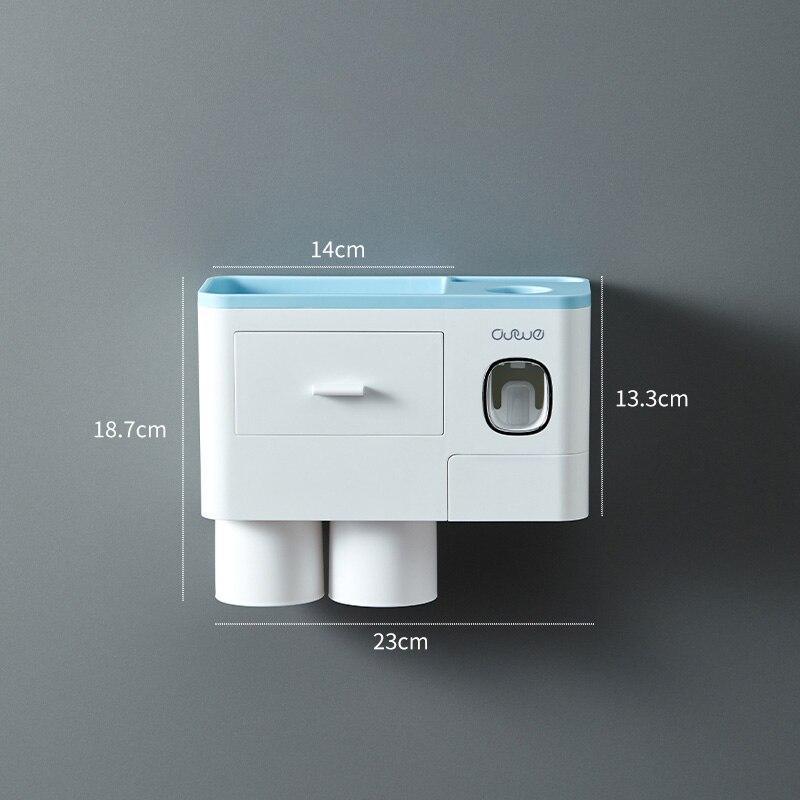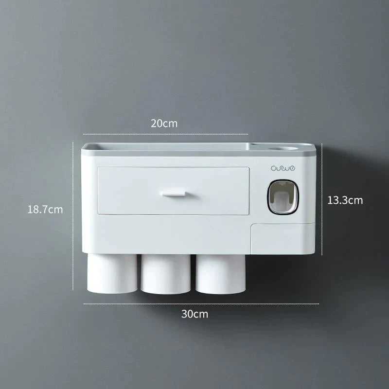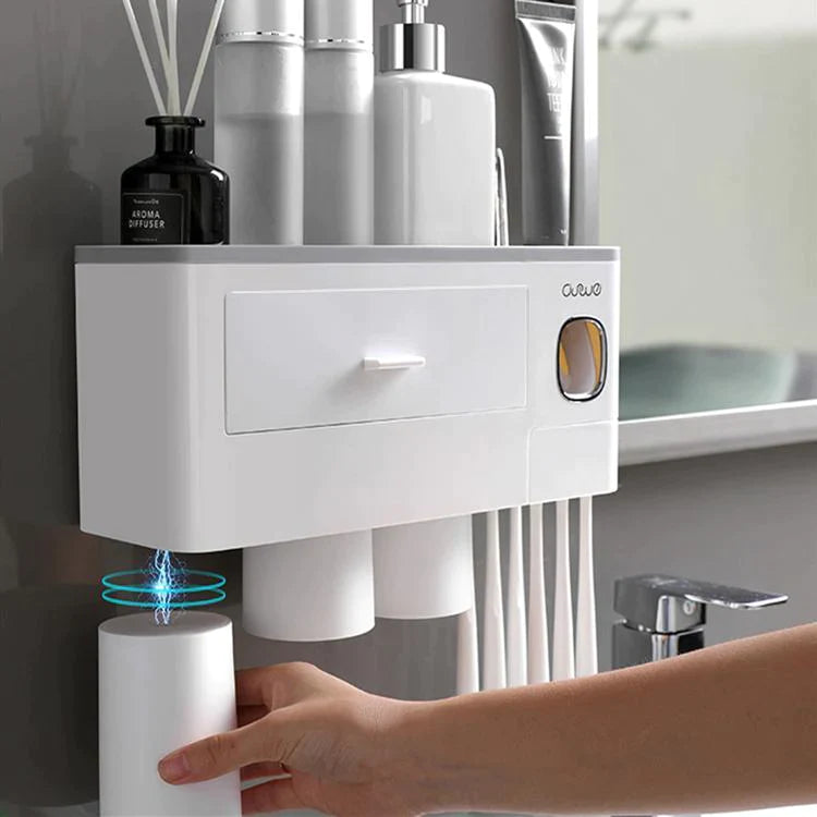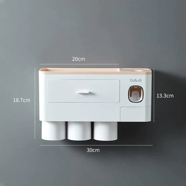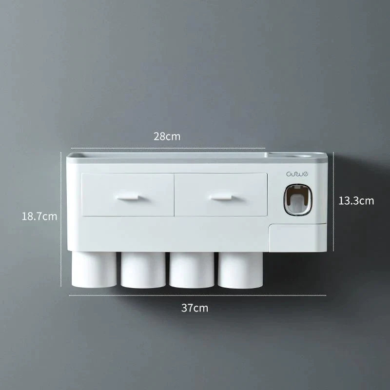 - AUTOMATIC TOOTHPASTE DISPENSER - This Toothbrush Holder features a built-in automatic toothpaste dispenser. It automatically assigns the perfect amount of toothpaste for you every time and prevents any waste of toothpaste.